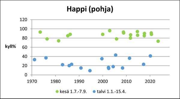 Veden happipitoisuus on ollut kesäisin hyvä, mutta talvisin on esiintynyt hapen vajausta pintaveteen asti ja pohjan lähellä happea on usein niukasti.