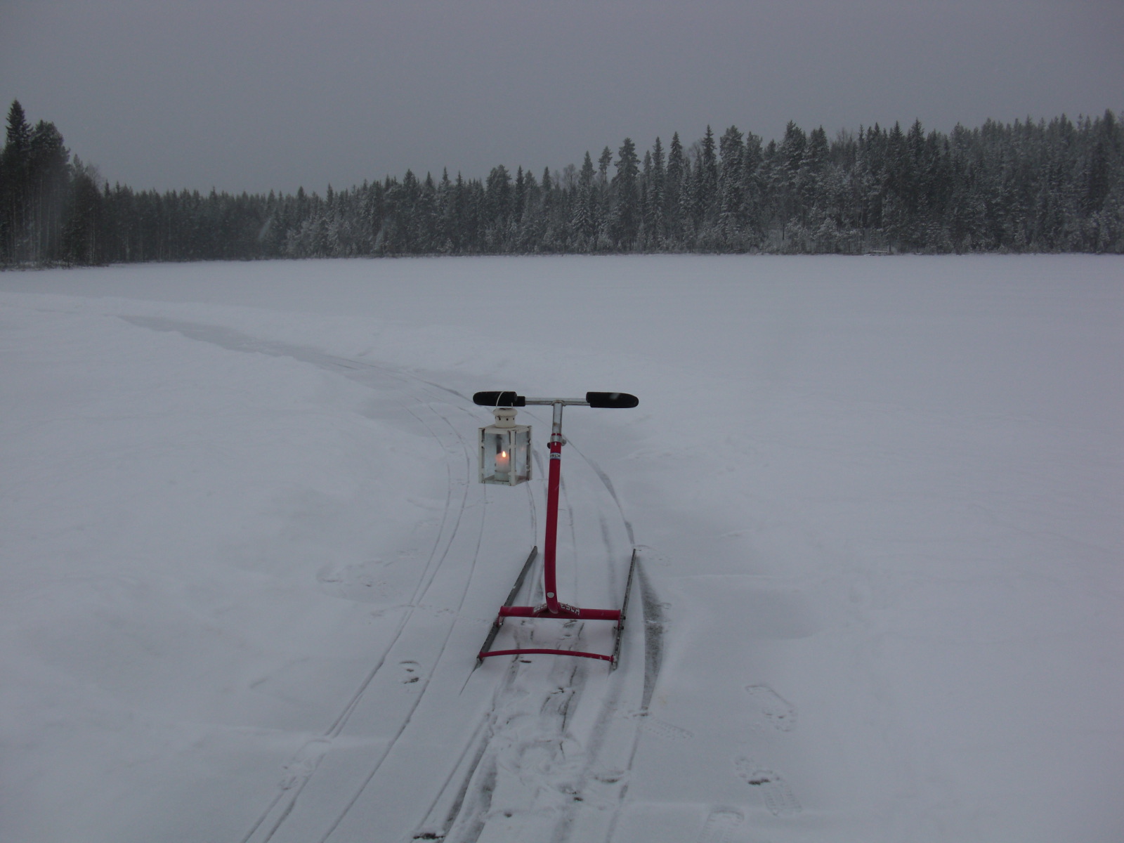 Potkukelkkarata lammen pohjoispäähän päin