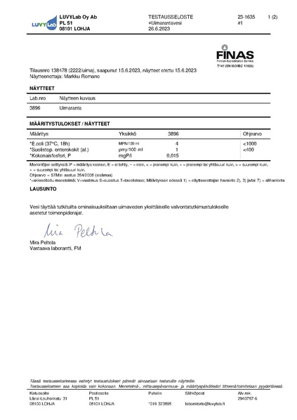 Uimavesinäyte Pyölinlahti 15.6.2023
