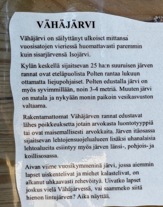 Kuvaus tekstinä Vähäjärvestä
